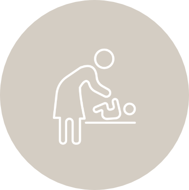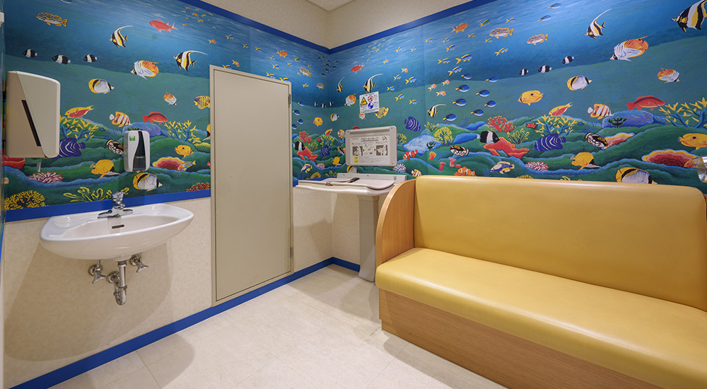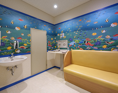 1階多目的トイレ、2階、14階化粧室内におむつ替えシートをご用意しています。